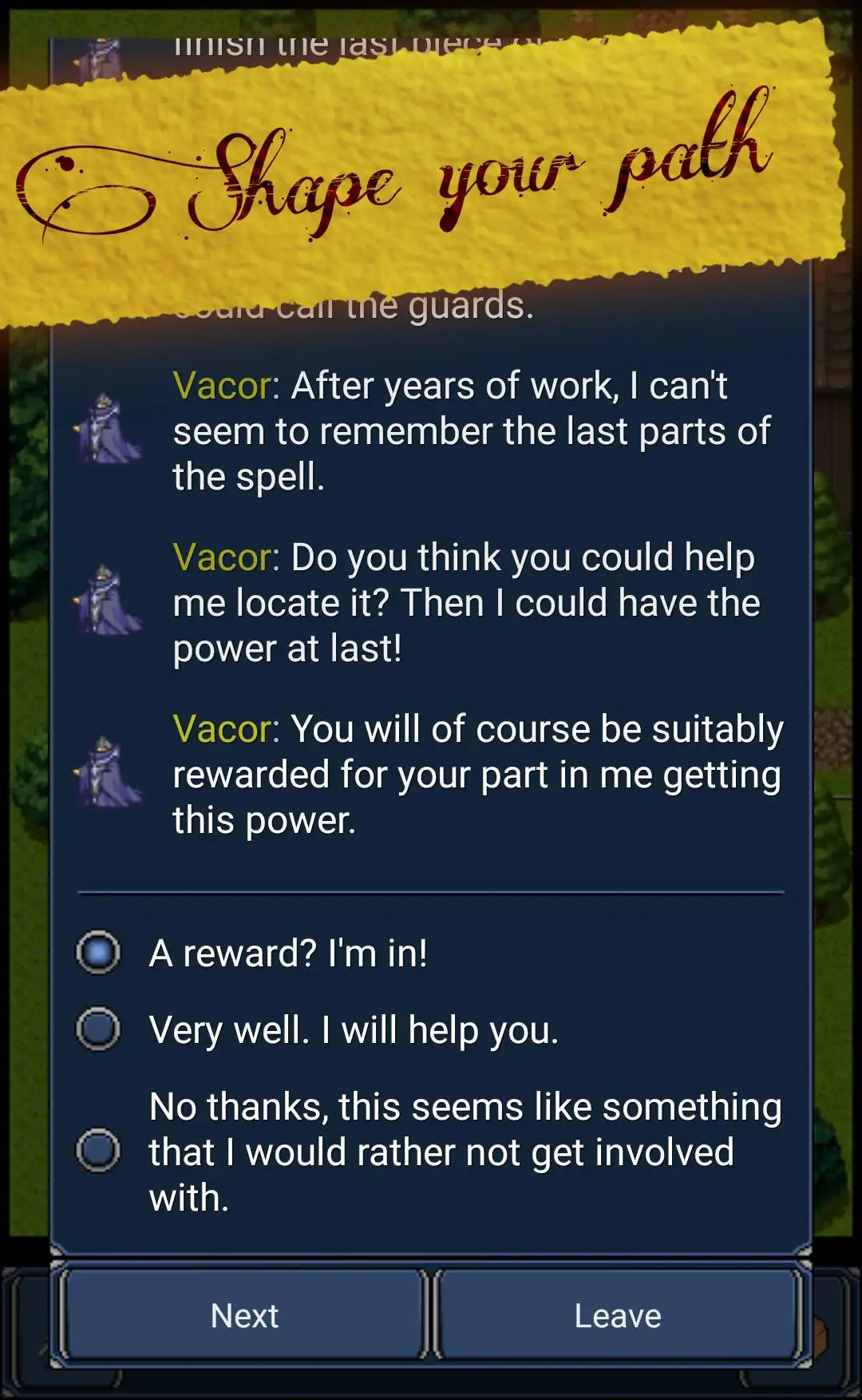 安道尔追踪(解锁大量货币)v0.8.12 中文版在回合制战斗中战斗怪物,通过升级和技能变得更强大,从各种设备中选择,与众多NPC互动,访问商店,旅馆和酒馆,寻找宝藏,并解决任务跟随你兄弟的踪迹并揭露在Dhayavar发挥作用的权力的秘密。幸运的话,你甚至可以找到一个传奇的物品!