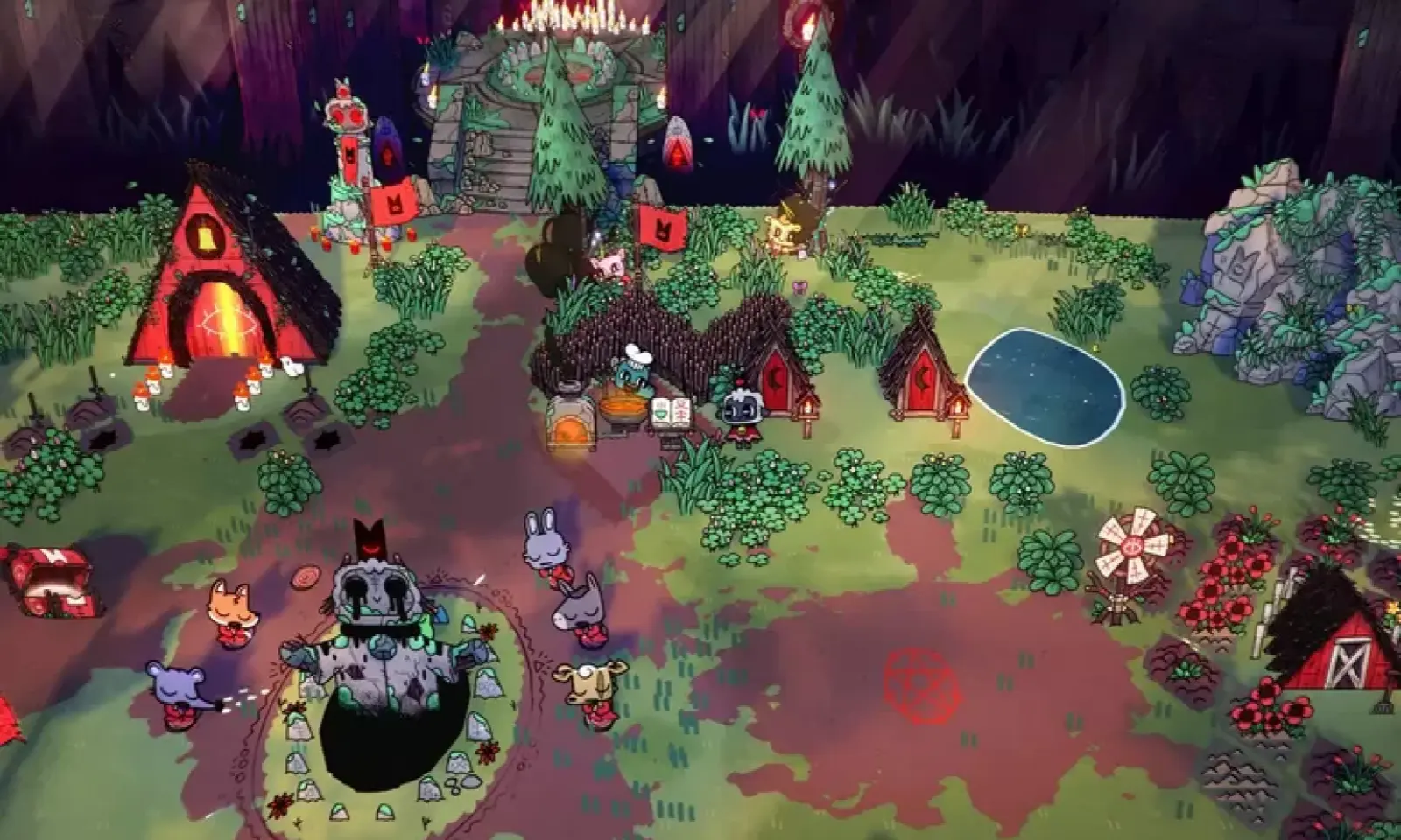 咩咩启示录全DLC(SWITCH手机版)v1.4.5 中文版玩家将扮演一只被阴郁不祥的陌生人拯救,免于一死的被附体的羊羔。为了报答救命之恩,玩家需要以那人之名组建一支忠诚的追随者队伍。在这片虚假先知横行的土地上,你要建立自己的教派,遍历大陆上神秘无比、风格迥异的各个区域,笼络一群笃信森林的忠诚信徒,广散你的真言,最终一统全境,成为唯一的正教。