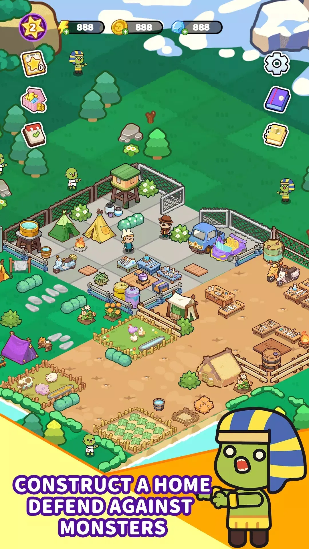 你喜欢生存游戏和合并游戏吗?那么现在就开始吧!创建避难营地,与其他幸存者和谐相处。 合成僵尸 万圣节,万圣节,可爱风格的僵尸。