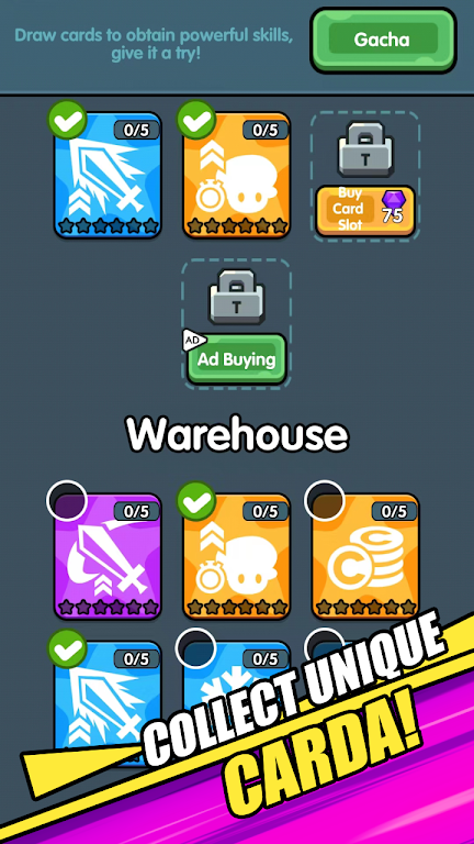 ? 独特的卡牌和助推器:收集并激活特殊卡牌,这些卡牌提供独特的加成和能力,以增强您的魔法。尝试不同的组合,找到每个关卡的最佳策略!